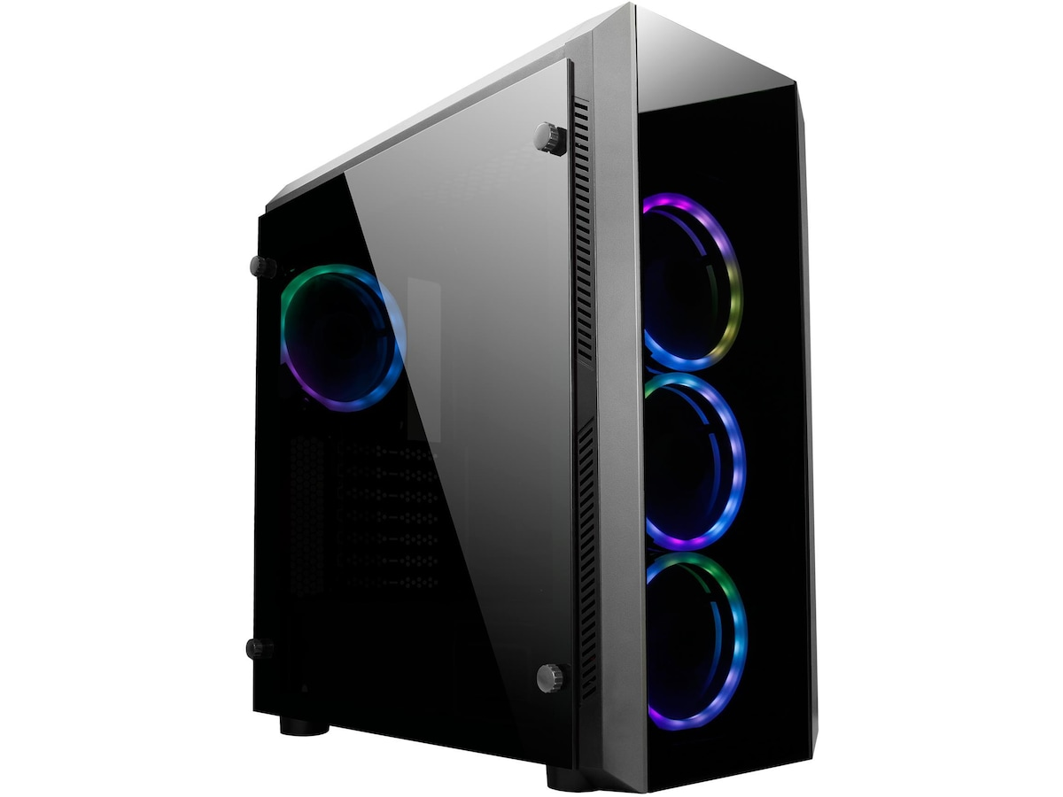 • Greencom Scorpion Z10 Midi Tower (Standard kabinett) - GAME IN STYLE. Scorpion Z10 gir deg et futuristisk preg med et elegant frontpanel lagd av glass, slik at du får et magisk innsyn av PC-komponentene innvendig. Den er utstyrt med avansert RGB-belysning, og både vifter og lysfunksjoner kan styres med en medfølgende kontroll.